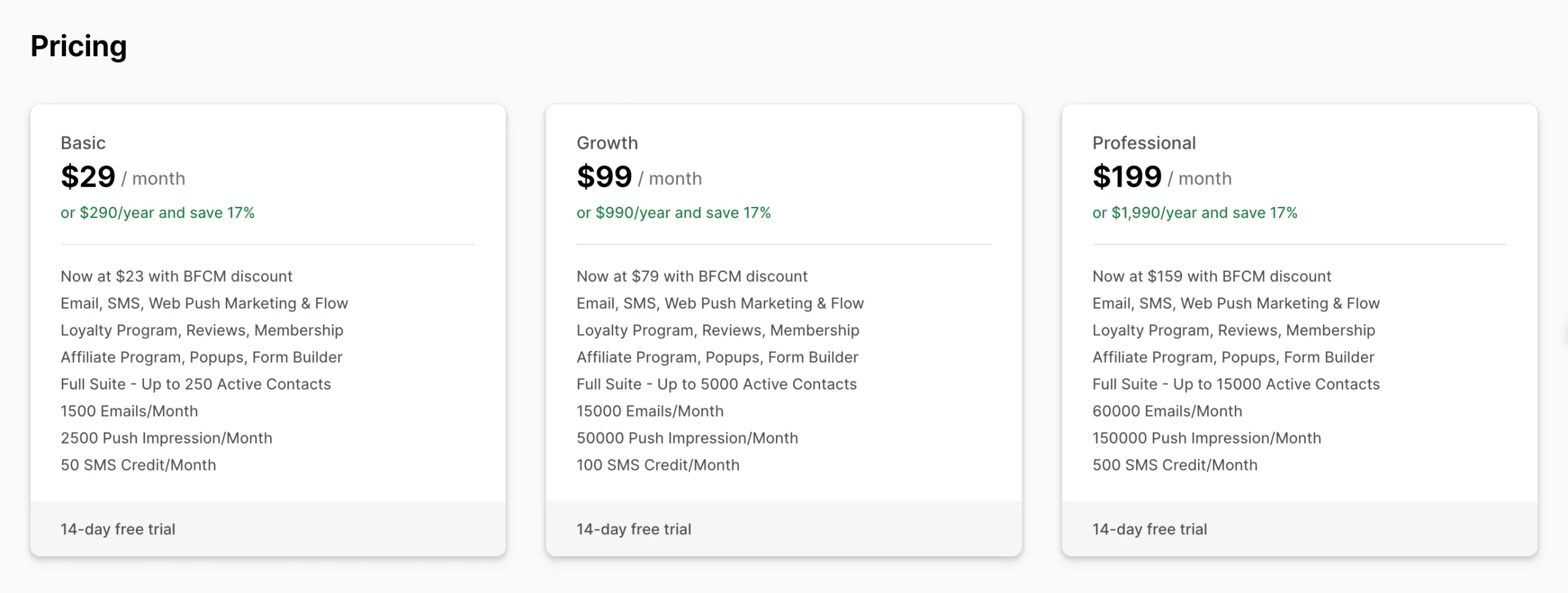 Pricing: From $12/month. Price increases as your email & SMS lists grow