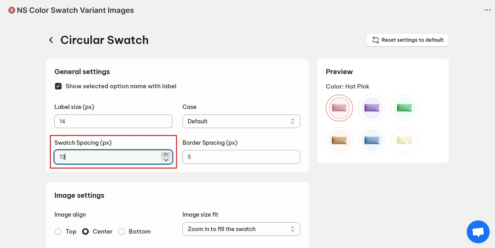 You can go to Design Settings to customize the swatch style further (Like we’ve just resized them in previous steps).