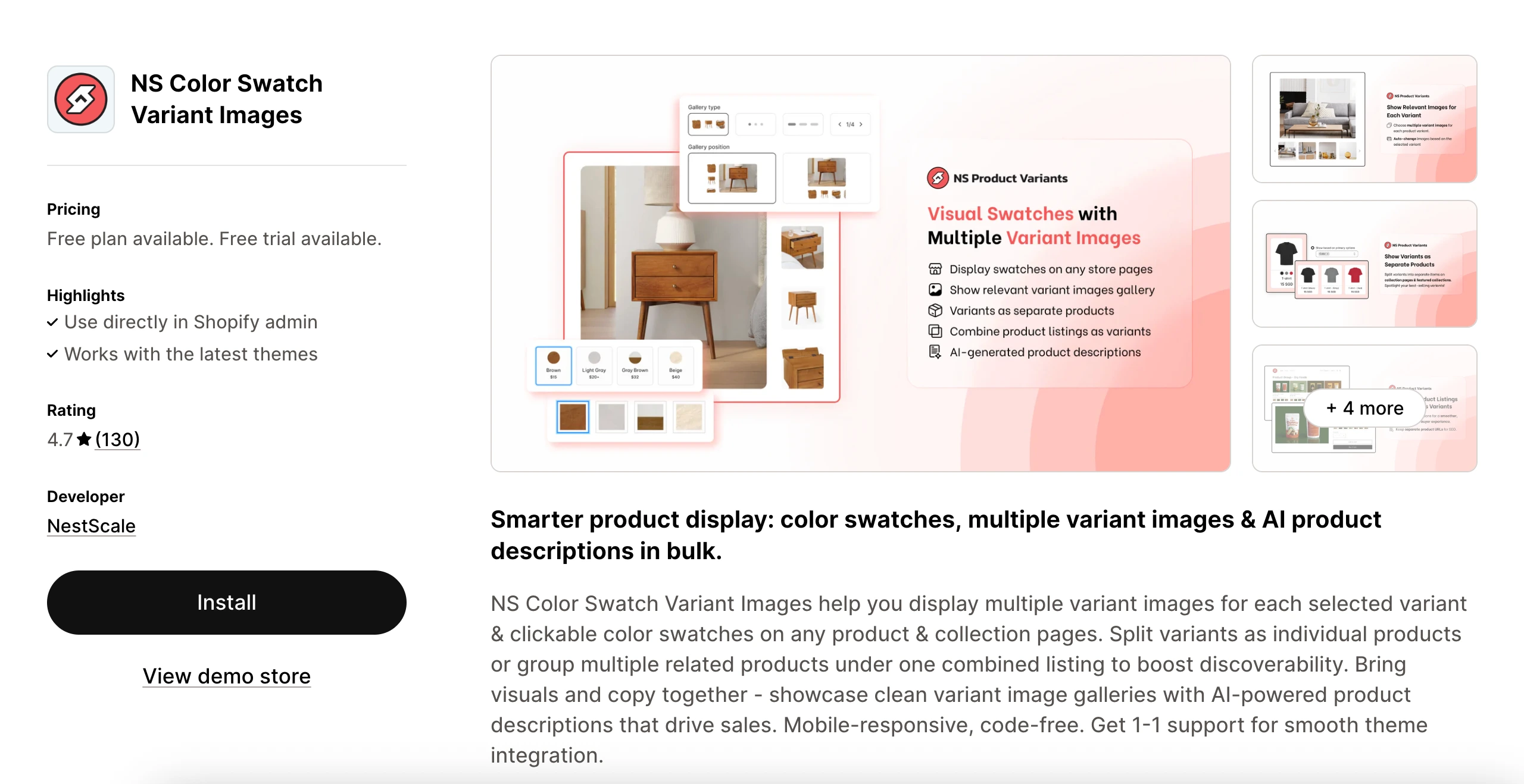 1. Go to the Shopify App Store and search for NS Color Swatch Variant Images.