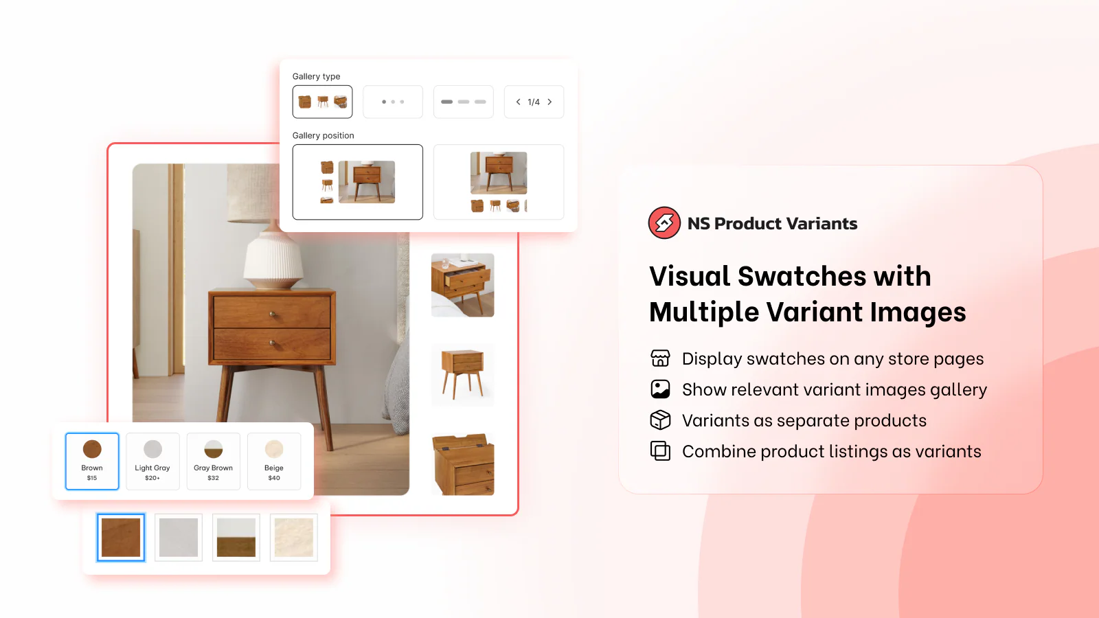 - Multiple variant images: Show only the selected variant images when a customer chooses a variant.
