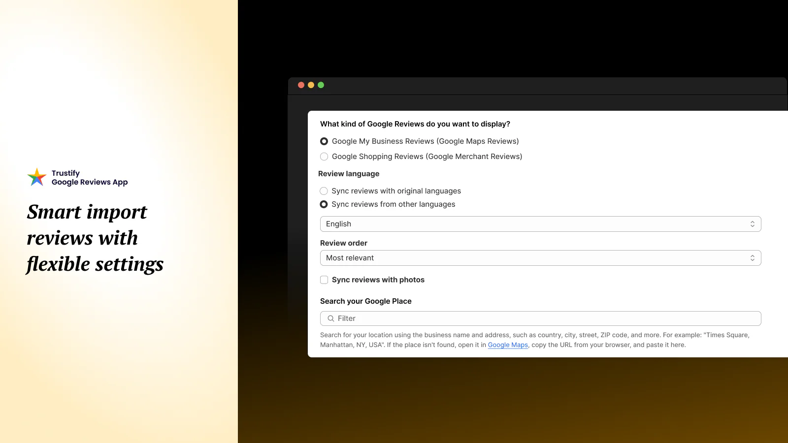 - Import reviews from Google Maps and Google Shopping