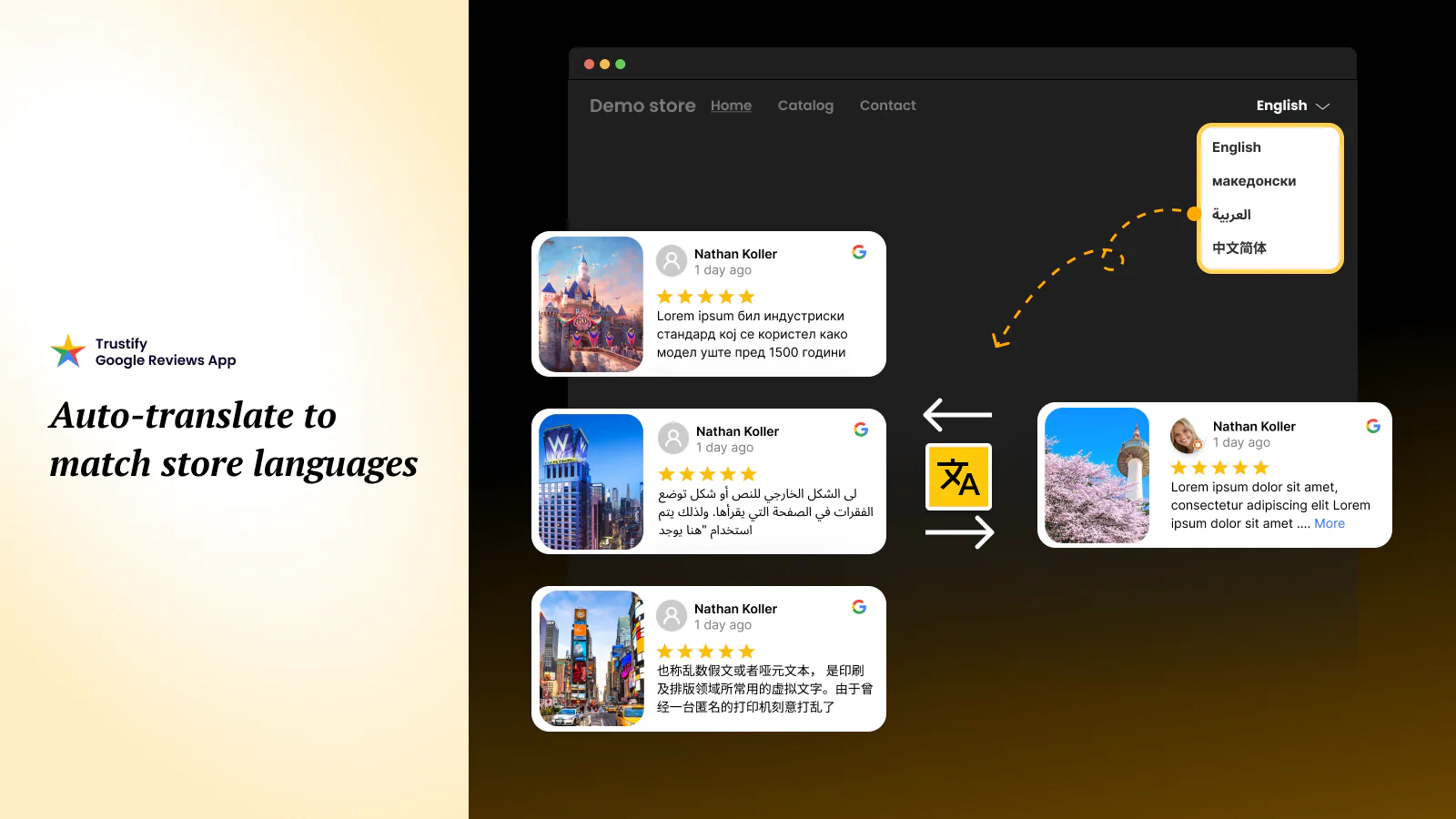 - Auto-translate reviews to match your store’s languages